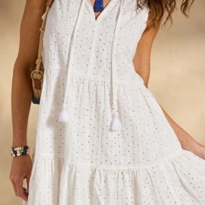 Pintucking. eyelet embroidery and lace details add a feminine touch to our easy knee length dress in a flowing A-line and special floral print. Functional front center placket with shell buttons and two shell button closure at the sleeve cuffs. Side seam pockets. Separate slip included. Cotton. Machine wash. Imported. Exclusive. Sizes XS (0?C2). S (4?C6). M (8?C10). L (12?C14). XL (16?C18). XXL (20?C22). Approx. 36l.