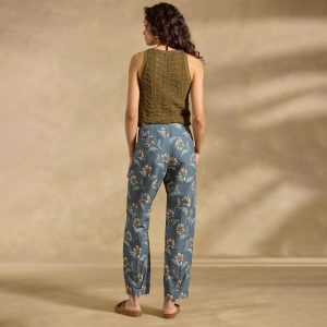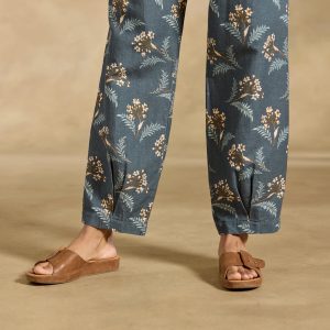 For our breezy Benicia Pants. the DELIGHT is in the details??including an exposed button fly. button details at the waist. subtle pleating and a sweet all-over floral print. Cotton/linen. Machine wash. Imported. Exclusive. Sizes 2?C16. 27 inseam.