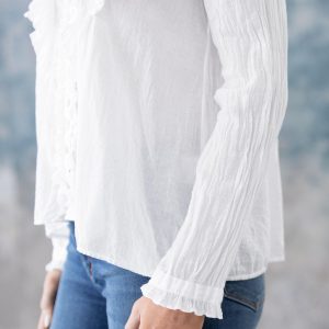 An ode to relaxed romance. this shell-button front. crinkle cotton blouse is awash with pintucks and ruffles. Banded cuffs. Hand wash. Imported. Sizes XS (0-2). S (4-6). M (8-10). L (12-14). XL (16-18). Approx. 24.5l.
