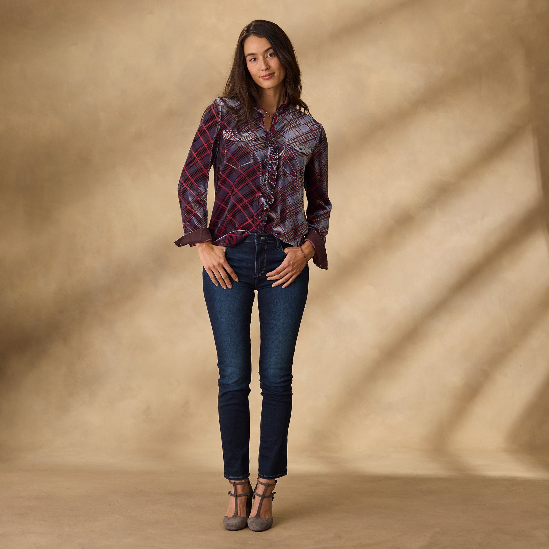 SKU: gretel-plaid-velvet-shirt-petite-27020492