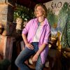 So flowing and flattering. our intriguing geo print dress with smocking detail at shoulders. ruffle at notch neckline. flutter sleeves. adjustable empire waist ties. double ruffle at hem and side seam pockets. Fully lined. Viscose. Machine wash. Imported. Exclusive. Sizes XS (0–2). S (4–6). M (8–10). L (12–14). XL (16–18). XXL (20–22). Approx. 38l.